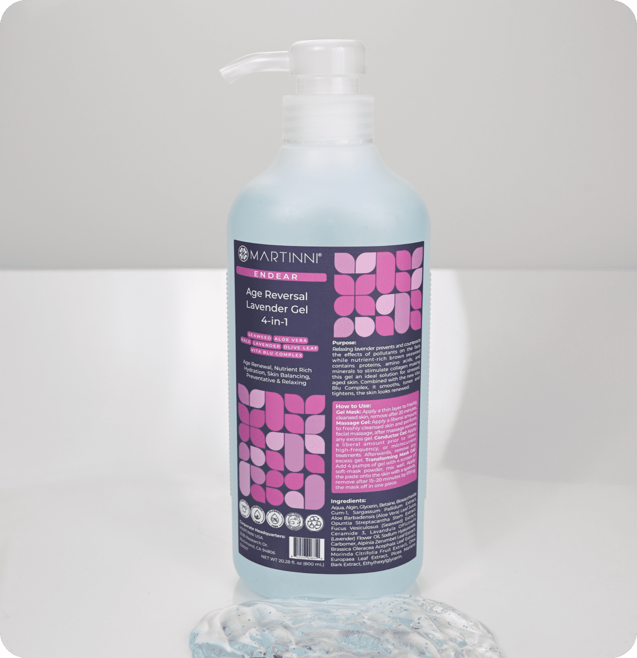 Relaxing Seaweed & Lavender Gel 4-in-1 by Martinni is a professional solution for combating the effects of pollution and stress on skin. This unique 4-in-1 facial gel can be used as a gel mask, massage gel, conductor gel, or a transforming mask additive that will turn any powdered soft mask into a one-piece sheet mask for easy and quick removal. Relaxing lavender contains powerful antioxidants to prevent and counteract the irritating effects of pollutants on the face, while nutrient-rich brown seaweed contains proteins, amino acids and minerals to stimulate natural collagen synthesis making this facial gel an ideal solution anti-aging solution for stressed, aged skin.