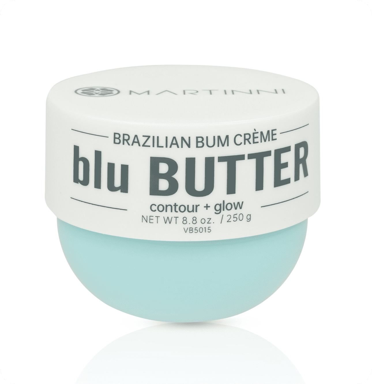 Revitalize your skin with Martinni Beauty’s Blu Butter Brazilian Bum Crème. This luxurious formula smooths, moisturizes, and contours for a luminous and peachy glow. This contouring butter-creme targets cellulite and hydrates, firms and lifts the skin. Potent antioxidant-rich plant extracts smooth and tightens the appearance of crepey and sagging skin to refine and redefine the structural contours. Luxurious Brazil Nut Oil combined with Shea Butter and Vita Blu Complex leaves a younger, firmer bouncy glow.