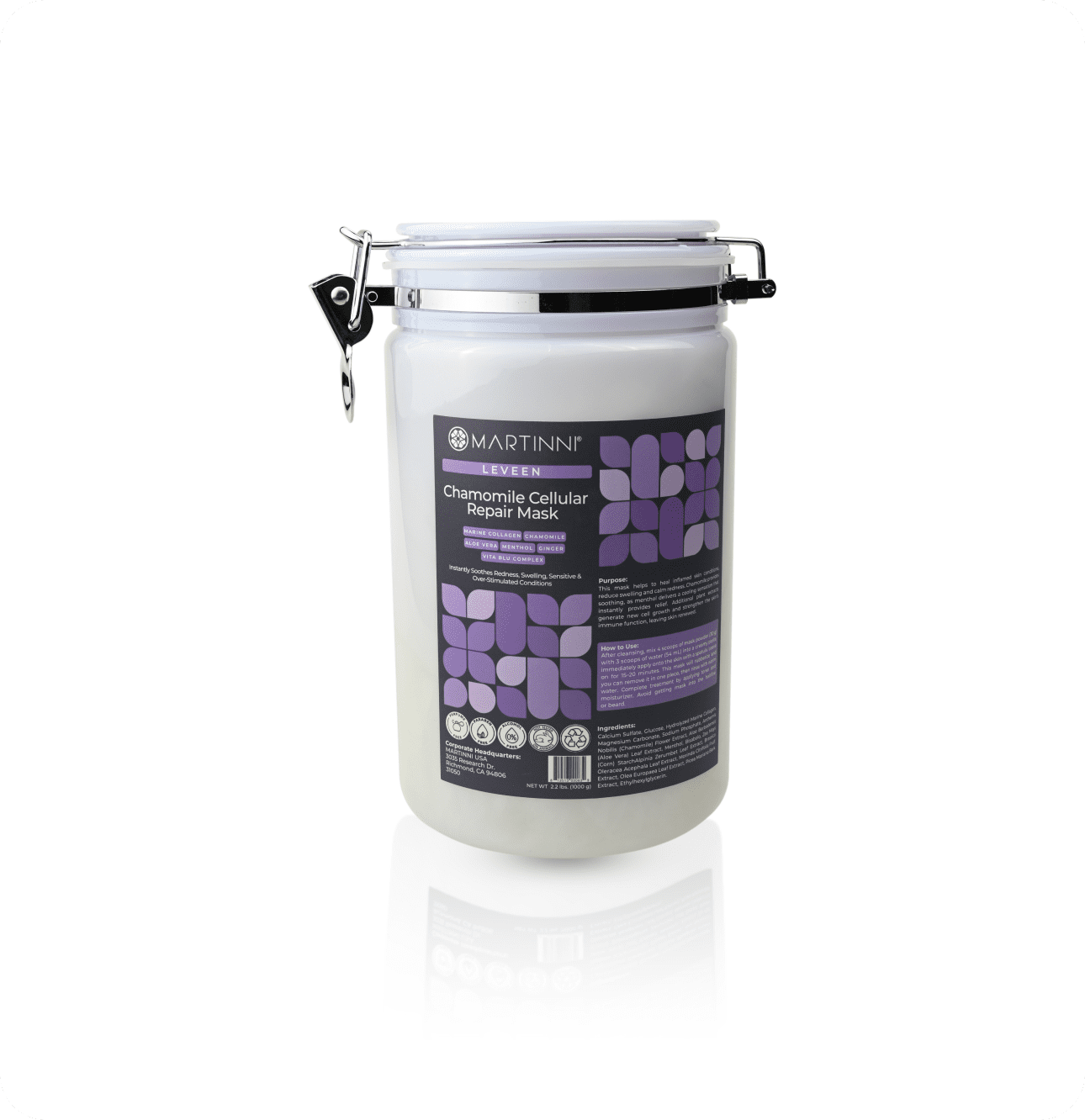 Martinni Beauty’s Chamomile Cellular Repair Mask is a soothing treatment designed for sensitive and allergy-prone skin. Infused with Chamomile and Aloe Vera, this professional-grade mask reduces redness, calms irritation, swelling, and strengthens the skin’s immune function. Its anti-inflammatory properties promote cell regeneration and hydration, leaving the skin refreshed, calm and radiant.