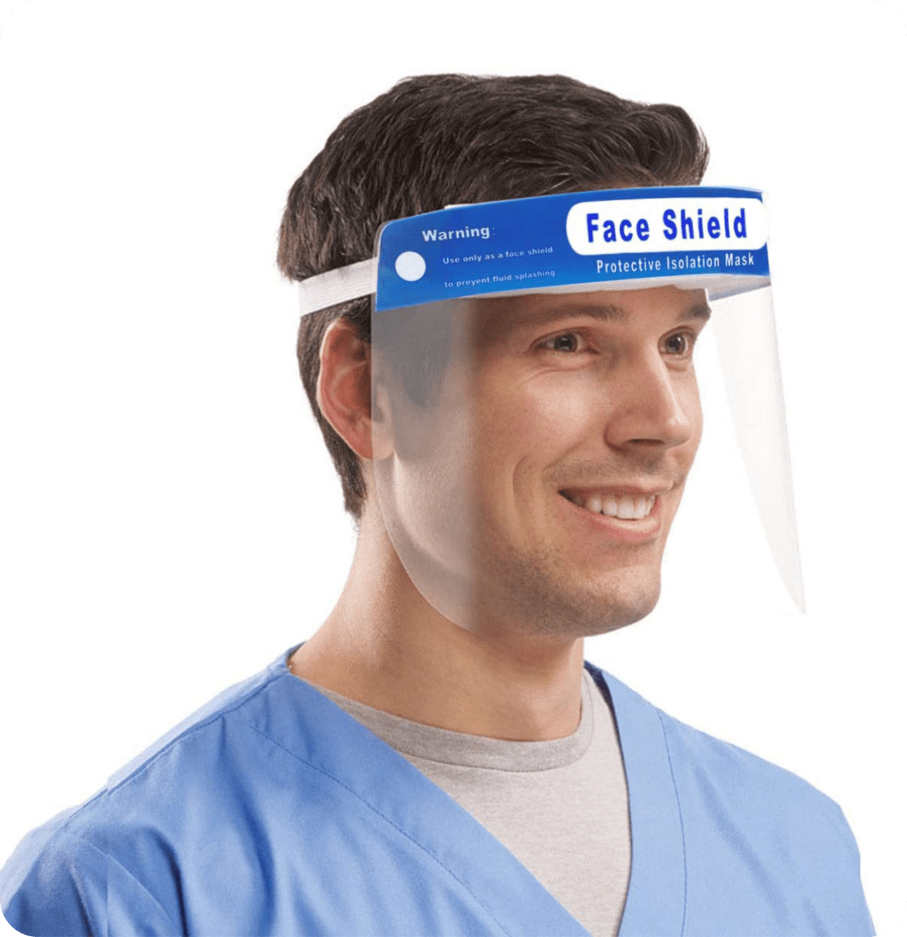 1. Adjust the shield’s head strap to fit securely.