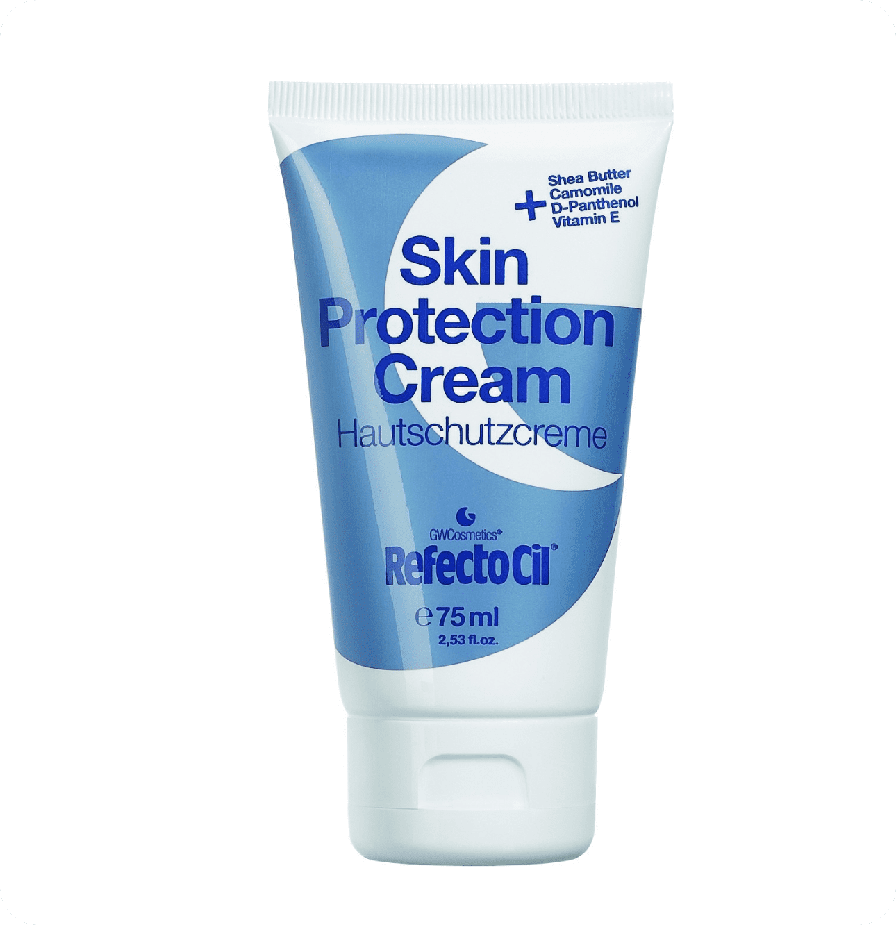 Skin Protection Cream by RefectoCil is a nourishing, protective cream enriched with shea butter, chamomile, D-panthenol, and vitamin E. It shields the skin during beauty treatments, providing hydration and calming sensitive areas.