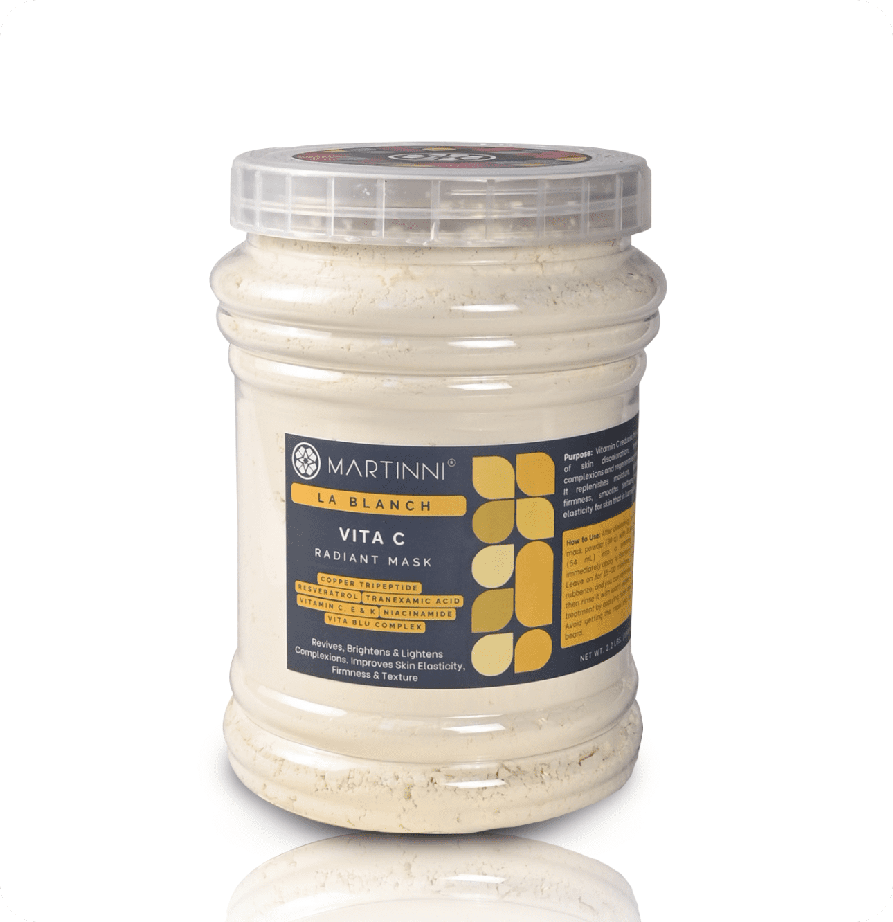 The Vita C Radiant Mask by Martinni Beauty combines powerful vitamins and antioxidants to improve skin luminosity and elasticity. This fruit mask is formulated with natural Vitamin C that helps to fight free radicals, brightens the skin, stimulates collagen and elastin production and cell regeneration to give an immediate perceptible glow, and a more even complexion. This mask retextures skin, replenishes moisture and hydration, diminishes blemishes, dark spots, improves firmness, texture and elasticity.